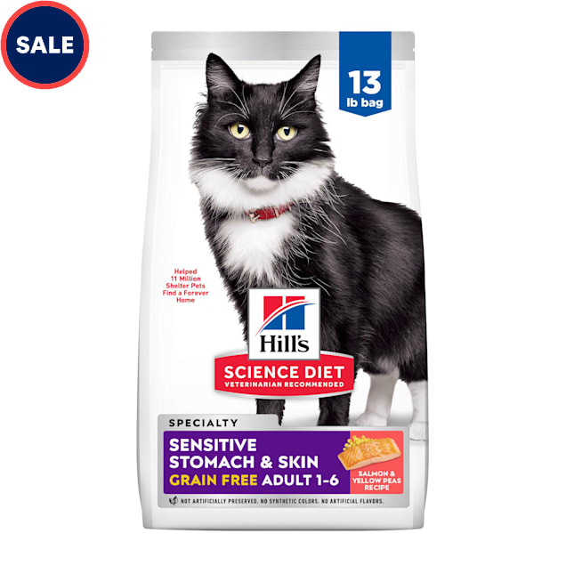 Hill S Science Diet Adult Sensitive Stomach Skin Grain Free Salmon Yellow Pea Recipe Dry Cat Food 13 Lbs Petco